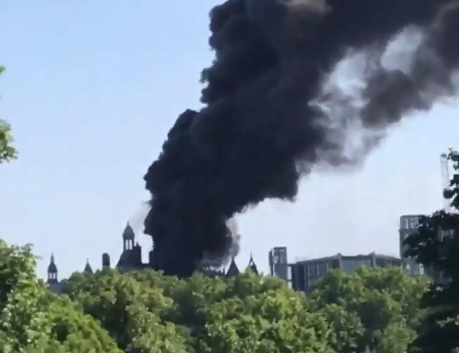 Veliki požar izbio je danas u blizini Hajd parka u centru Londona, javio je Bi-Bi-Si (BBC).