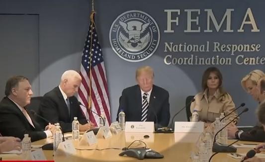 Američki predsednik Donald Tramp i potpredsednik Majkl Pens snimljeni su u jednoj veoma bizarnoj situaciji tokom sastanka Sektora za vanredne situacije.