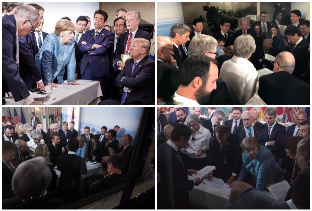 Na upravo završenom samitu G7 u Kvebeku zabeležen je trenutak očito važnog razgovora svetskih lidera, ali - na četiri različite fotografije, snimljene skoro istovremeno iz različitih uglova, od kojih svaka dočarava drugačiji "odnos snaga" među akterima i više verzija jedne iste scene.