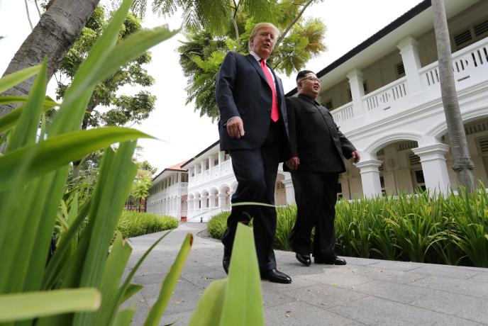 Posle radnog ručka sa predstavnicima delegacija obe zemlje američki predsednik Donald Tramp i lider Severne Koreje Kim Džong-un prošetali su parkom luksuznog hotela u kome se održavaju razgovori.