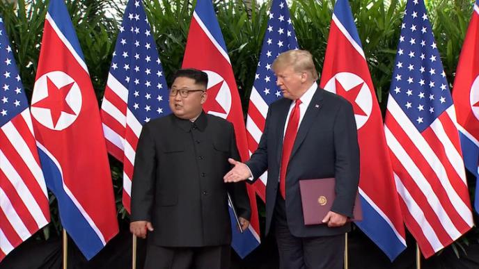 Pošto su potpisali dokument kojim se Pjongjang obavezao na denuklearizaciju, lideri SAD i Severne Koreje, Donald Tramp i Kim Džong-un, ponovo su stali pred novinare da rukovanjem potvrde dogovor.
