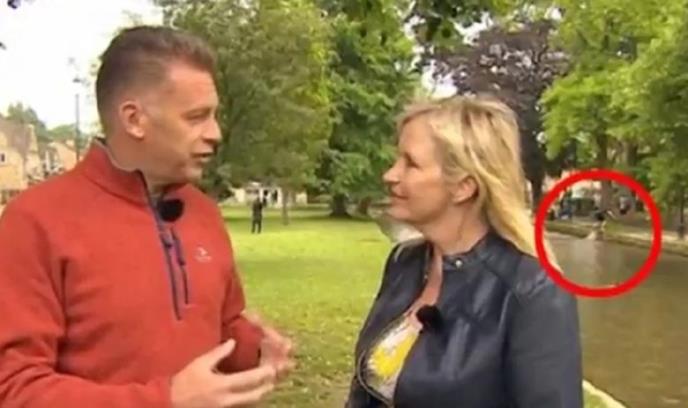Naime, dok je novinarka Karol Kirkvud razgovarla sa fotografom Krisom Kakhamom pored reke Vindruš, u pozadini je jedan muškarac drugog gurnuo u vodu.