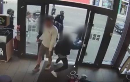 Dramatični snimci dečaka koji se bore noževima u poznatom restoranu brze hrane, i pri tome oborili stariju ženu na pod, snimljeni su u Londonu.
