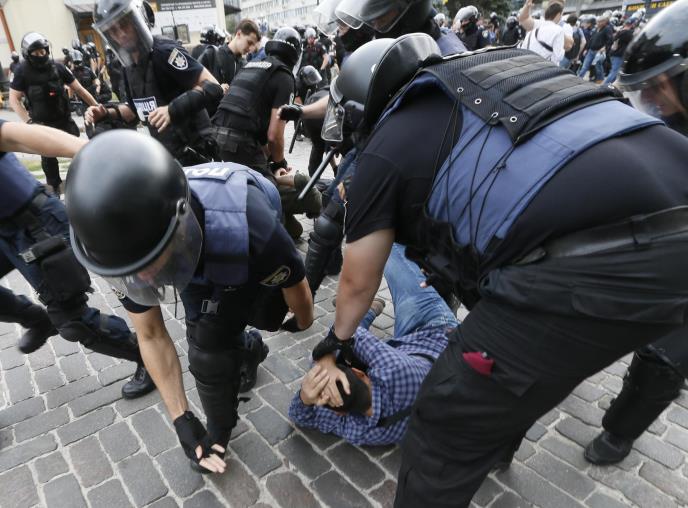 Rano jutros, više od 150 krajnje desničarskih demonstranata pokušalo je da blokira put kojim treba da prođu učesnici Parade u centru Kijeva, prenosi Rojters. Izbili su manji sukobi kada je policija u opremi za razbijanje nereda izašla da raščisti ulice.