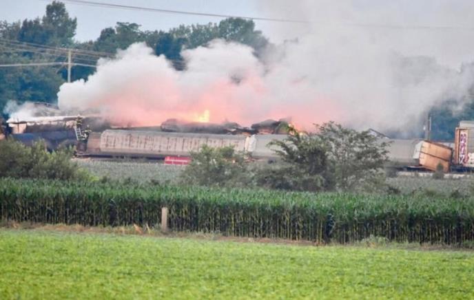 Na jugozapadu Indijane dogodila se danas železnička nezgoda kada je teretni voz iskočio iz šina a nekoliko vagona se zapalilo.