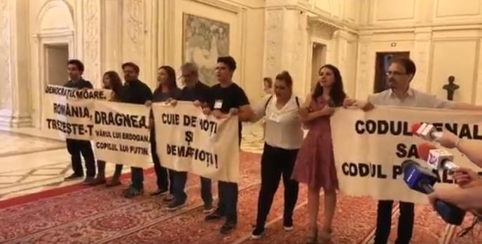 Učesnici protesta uspeli su da uđu u parlament u pratnji poslanika opozicione partije "Spasimo rumunsko jedinstvo".
