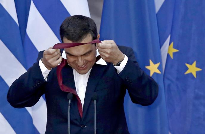 Grčki premijer Aleksis Cipras stavio je večeras kravatu prvi put od kada je došao na vlast pre više od tri godine, kako bi proslavio dogovor o kraju finansijske pomoći.