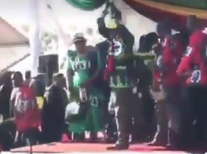 Mnagagva je mahao pristalicama posle završetka govora, posle čega je polako krenuo ka zatvorenom prostoru iza bine, u pratnji više zvaničnika vladajuće Zanu-PF stranke.