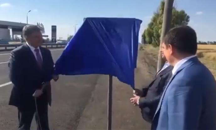 Korisnici društvenih mreža kritikovali su predsednika Ukrajine Petra Porošenka, koji je svečano otkrio saobraćajni znak na renoviranom delu trase Zaporožje – Dnjepar.