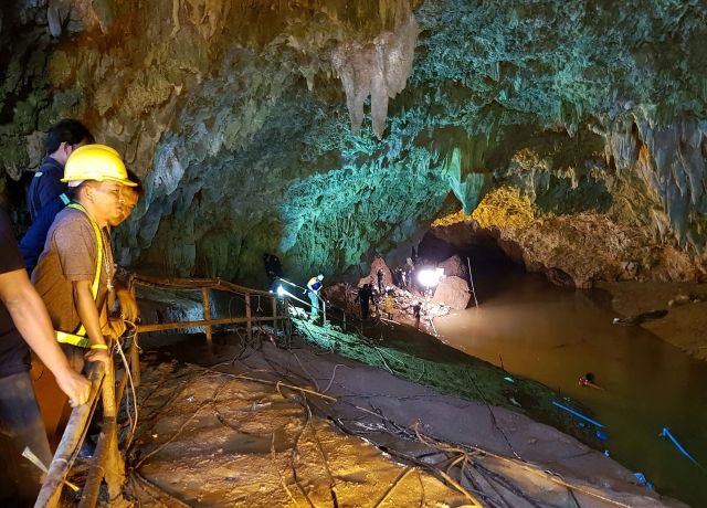 Pećinski kompleks proteže se na nekoliko kilometara, sa uskim prolazima i nejednakim tlom, a teren je poznat i po velikim naplavinama tokom kišnih sezona. Tokom noći, nivoi vode podizali su se za oko 15 centimetara po satu, otežavajući potragu tajlandskih "foka" kroz uske prolaze.