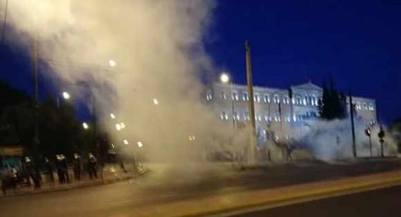 Ispred zgrade parlamenta u Atini, grupa maskiranih ljudi zasula je irotehničkim sredstvima i drugim predmetima policiju koja je uzvratila suzavcem.