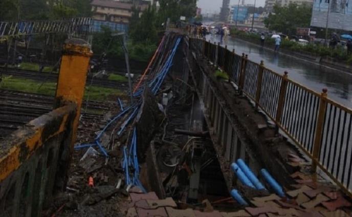Deo nadvožnjaka koji se nalazi iznad pruge u Mumbaiju srušio se zbog jake kiše koja je poplavila područje, a šestoro ljudi je povređeno. Saobraćaj je zaustavljen na mostu i ispod njega.
