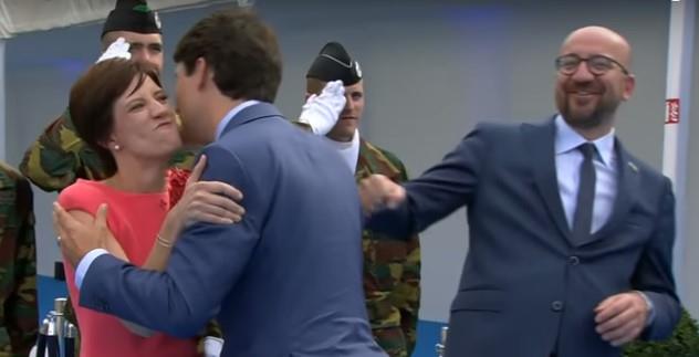 Šarl Mišel je dočekao Trudoa raširenih ruku, međutim, Trudo je samo prošao i srdačno se pozdravio sa Mišelovom partnerkom Ameli Derbodrengjen.