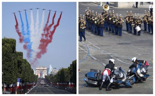 Paralelno, avijacija koja je preletela tribine na kojima su sedeli zvaničnici pomešala je boje francuske zastave.