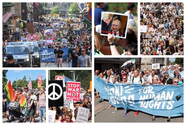 HELSINKI - Oko 1.500 ljudi protestuje u Helsinkiju uoči sutrašnjeg samita u finskoj prestonici predsednika SAD i Rusije Donald Trampa i Vladimira Putina.