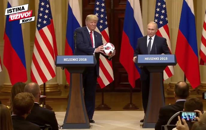 17.49 - Putin je poklonio fudbalsku loptu Trampu rekavši "Sada je lopta na vašem terenu", a američki predsednik je odgovorio: "Hvala, ovo će dobiti moj sin Baron!".