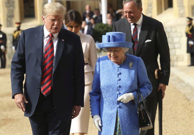 Iako prvog dana Trampove posete Britaniji nije bio predviđen njegov sastanak sa kraljicom ona je već na dan kada je on stupio na tlo Britanije, nosila broš koji joj je poklonio bivši predsednik SAD Barak Obama i njegova supruga Mišel. To se vidi na slici kraljice sa kentenberijskim nadbiskupom i velikim imamom Al-Azarom.