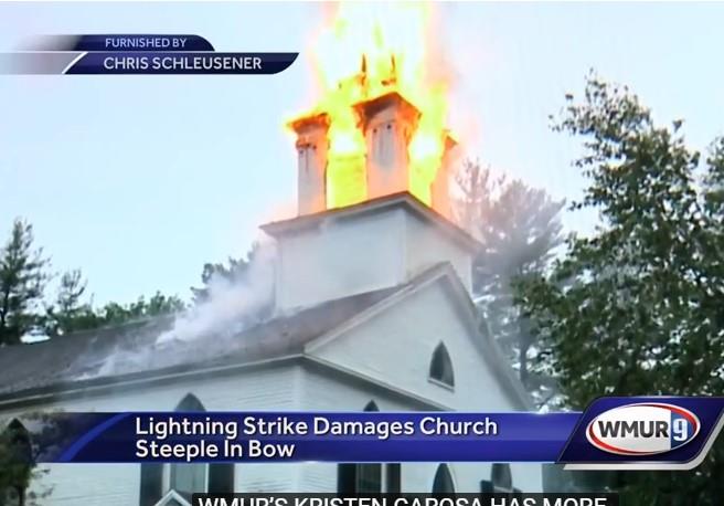 BOU, NJU HEMPŠIR - Munja je udarila u 186 godina staru crkvu u gradu Bou i spalila zvonik kad je oblast u Nju Hempširu u kojoj se taj grad nalazi pogodila nepogoda.