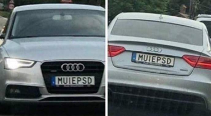 Jedan vozač u Rumuniji pretvorio je svoje registracije u političku poruku uzevši akronim vladajuće Socijaldemokratske stranke PSD i dodao slova MUIE, što bi u prevodu zajedno otprilike značilo ''Po.uši, PSD''.