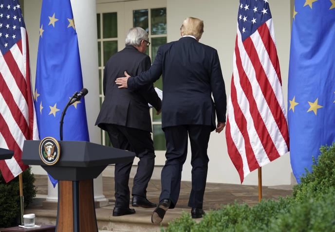 Američki predsednik je uz fotografiju objavio i tvit: "Očigledno je da se vole Evropska unija, koju zastupa Junker i Sjedinjene Države, koje predstavlja iskreno vaš!"