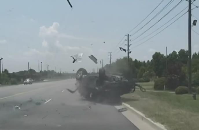 Upravo u tom trenutku, devojka je “udarila po gasu” i pobegla. Međutim, kada ju je policijski automobil zakačio, SUV se isprevrtao nekoliko puta. Može se videti i kako je nesmotrena devojka ispala iz automobila.
