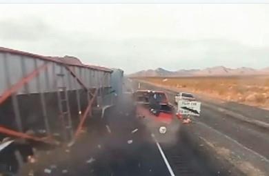 Vlasti američke savezne države Nevade objavile su dramatični video-snimak saobraćajne nesreće koju je izazvao kamiondžija kad je zaspao za volanom na auto-ptu i uleteo u tri automobila.