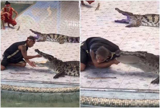 Izvesni Tao (45) je ruku stavio u krokodilovu čeljust i to skoro do ramena. Međutim, iako se činilo da vlada situacijom, u jednom trenutku je reptil zagrizao i pokušao da mu otkine ruku.