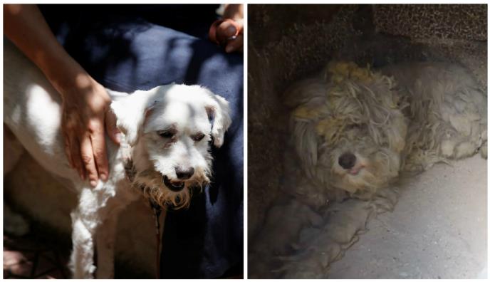 Kako je rekla, mali beli pas je ličio na spaljeni otirač kada je pronađen. Sada je ošišan, okupan i oporavljen.