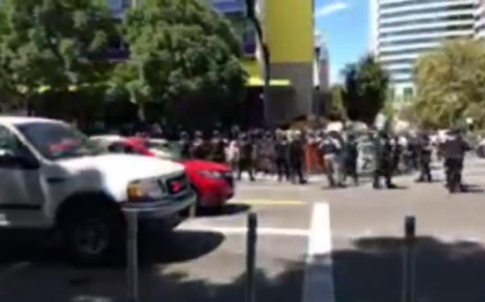 Maskirani antifašisti obučeni skroz u crno i sa štitovima viđeni su kako se skupljaju blizu Voterfront parka.