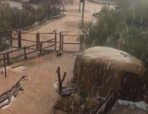 Oko 3.400 ljudi bilo je u poseti zoo vrtu za vreme oluje praćene kišom. Nekoliko vozila je uništeno u nevremenu.