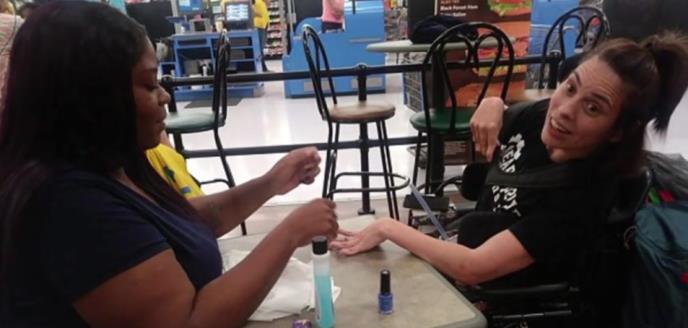 Nakon što su u jednom salonu za manikir odbili da srede nokte devojci u invalidskim kolicima, kasirka iz obližnjeg supermarketa je odlučila da uskoči i ulepša joj dan.