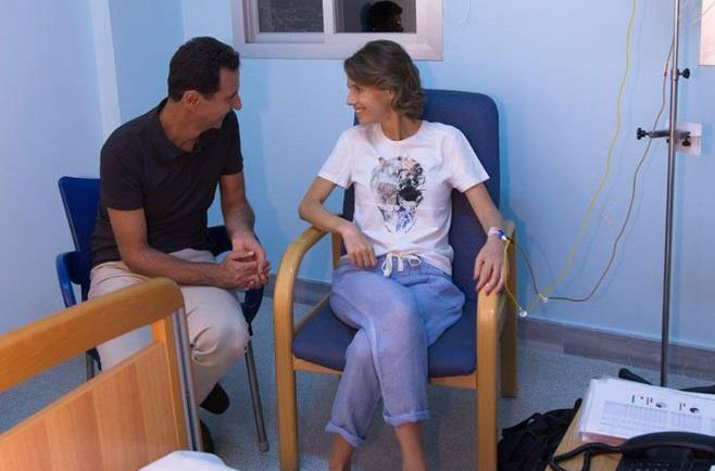 Na zvaničnoj Fejsbuk stranici Predsedništva objavljena je fotografija sirijskog predsednika kako sedi pored bolničkog kreveta svoje supruge koja prima terapiju, ispod koje piše da je maligni tumor otkriven u ranoj fazi.