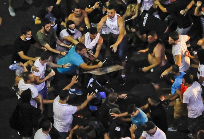 Sukobi su izbili na jučerašnjem protestu kada su neki od desetine hiljada učesnika protesta pokušali da probiju policijski kordon oko vladinih objekata.