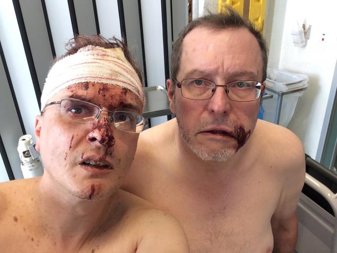 Italijan Mauro Padovani (47), crtač stripova koji živi u Belgiji, objavio je na Fejsbuku šokantne fotografije sebe i svog muža Tomasa Frimana (59) snimljene pošto su ih zverski napale nasilne komšije - Hrvatica koju su lokalni mediji identifikovalikao Jasminu R. (21) i njen dečko Bugarin (23).