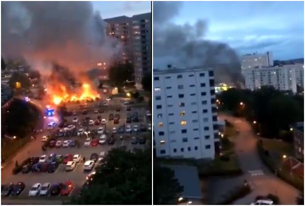 Požari su prijavljeni u Malmeu, Geteburgu i Helsingborgu, a na internetu je objavljen dramatičan snimak na kojme se vidi omladina koja pali automobile u šoping centru i na parkingu jedne bolnice na zapadu zemlje.