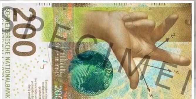 Na novoj švajcarskoj novčanici od 200 franaka stoji motiv sa podignuta tri prsta.