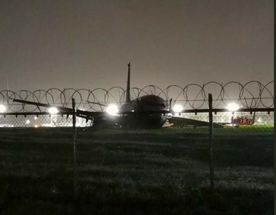 Na pisti je još uvek vanredno stanje i u toku je evakuacija ljudi iz aviona. Slika koja se pojavila na internetu prikazuje avion kako stoji nakrivljen na pisti.