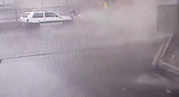 Na snimku se vidi trenutak tragedije iz dva različita ugla. Najpre je kišu koja je padala zamenio oblak guste prašine kroz kojI se ništa ne razaznaje, a potom je sve nestalo!