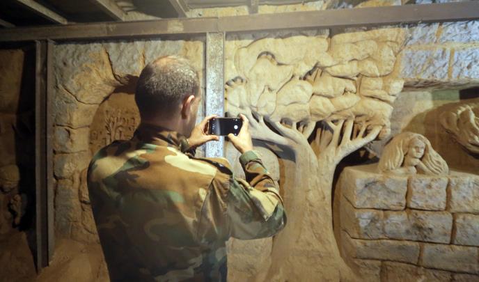 Upravo dok je bio na položaju, Muhanad Muala, vojnik sa umetničkom prošlošću izrezbario je nekoliko skulptura na zidovima.