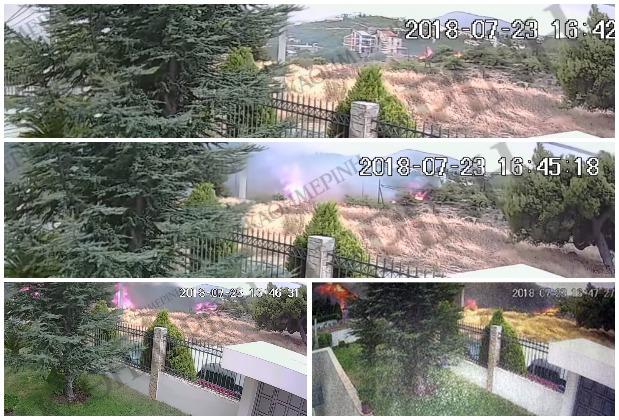 Ovaj video snimak uzet je sa sigurnosne kamere jedne od kuća u naselju Neo Pentelis i na njemu se vidi da je vatra izbila između jedne dvospratne kuće i pomoćnog objekta.
