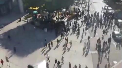 Oko 800 ljudi je marširalo centrom grada, a neki od njih su policiju gađali flašama.
