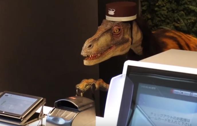 Jedan hotel u Tokiju nudi gostima nesvakidašnji doček - robote dinosauruse na recepciji, ali to nije jedina neobičnost, jer ovaj ugostiteljski objekat raspolaže i akvarijumom u kojem se takođe nalaze roboti, ovoga puta u obliku raznobojnih svetlećih riba.