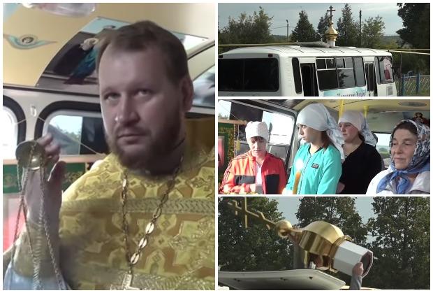 RUSKI POP PRETVARA AUTOBUS U CRKVU ZA TREN OKA: Parkira se, stavi krst na krov, a vernici samo naviru (VIDEO)