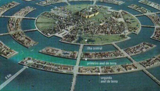 Platon je takođe opisao Atlantidu u svojim tekstovima sledećim rečima: "Postojale su alternativne zone mora i kopna koje su se okruživale, postojale su dve zemlje i tri vode.“