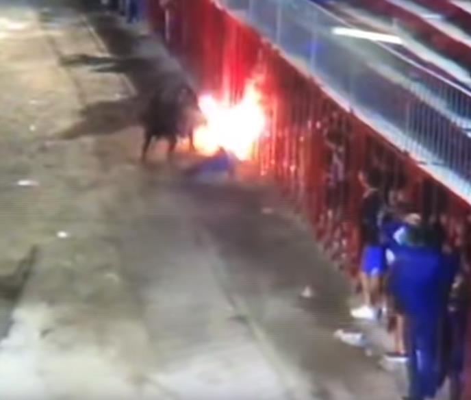 BIK SA ZAPALJENIM ROGOVIMA UBIO ŠPANCA NA FESTIVALU: Nesrećnom čoveku nije bilo spasa, od udarca se pretvorio u buktinju! (UZNEMIRUJUĆI VIDEO)