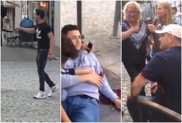 Jedan od ranjenih je muškarac koji je bio sa porodicom u jednom lokalnom restoranu kada je video da muškarac sa nožem trči ka njima. On je pokušao da se odbrani stolicom, a tom prilikom je izboden u ruke i leđa.