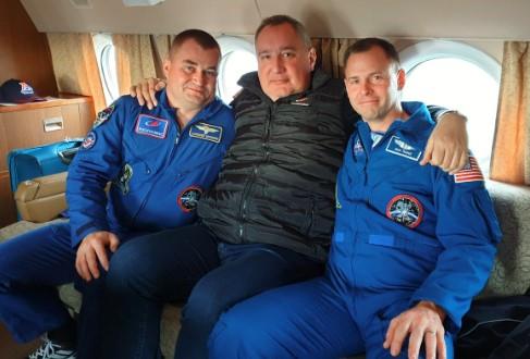 Rogozin je danas na Tviteru postavio fotografiju na kojoj je prikazan kako sedi pored dvojice astronauta.