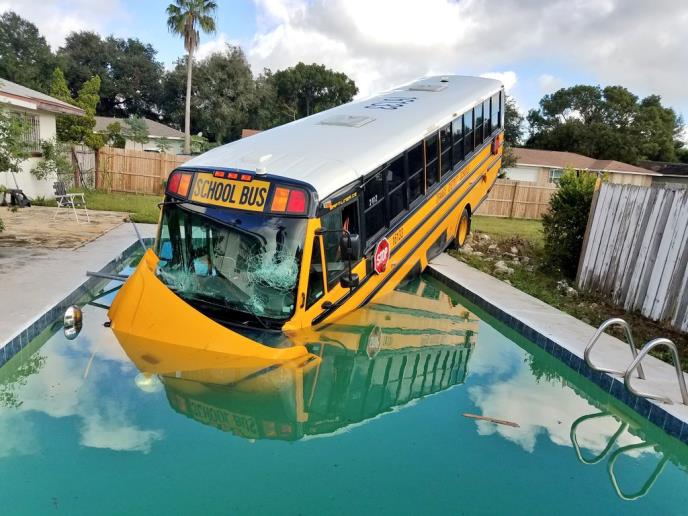 Jedan školski autobus, u kome je bilo devetoro dece, posle sudara sa džipom upao je u bazen u Pajn Hilsu na Floridi.