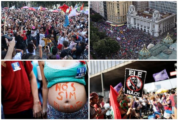 Učesnici protesta u Braziliji, Rio de Žaneiru, Sao Paulu i još 24 brazilska grada uzvikivali su "Ne on", što je postalo i slogan protiv bivšeg vojnog kapetana Bolsonara.
