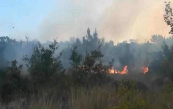 Požar velikih razmera izbio je danas na Sitoniji, na severu Grčke, čije gašenje otežava snažan vetar.